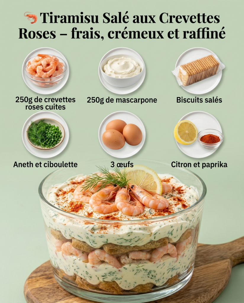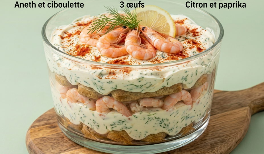 Tiramisu Salé aux Crevettes Roses – Une entrée fraîche et élégante