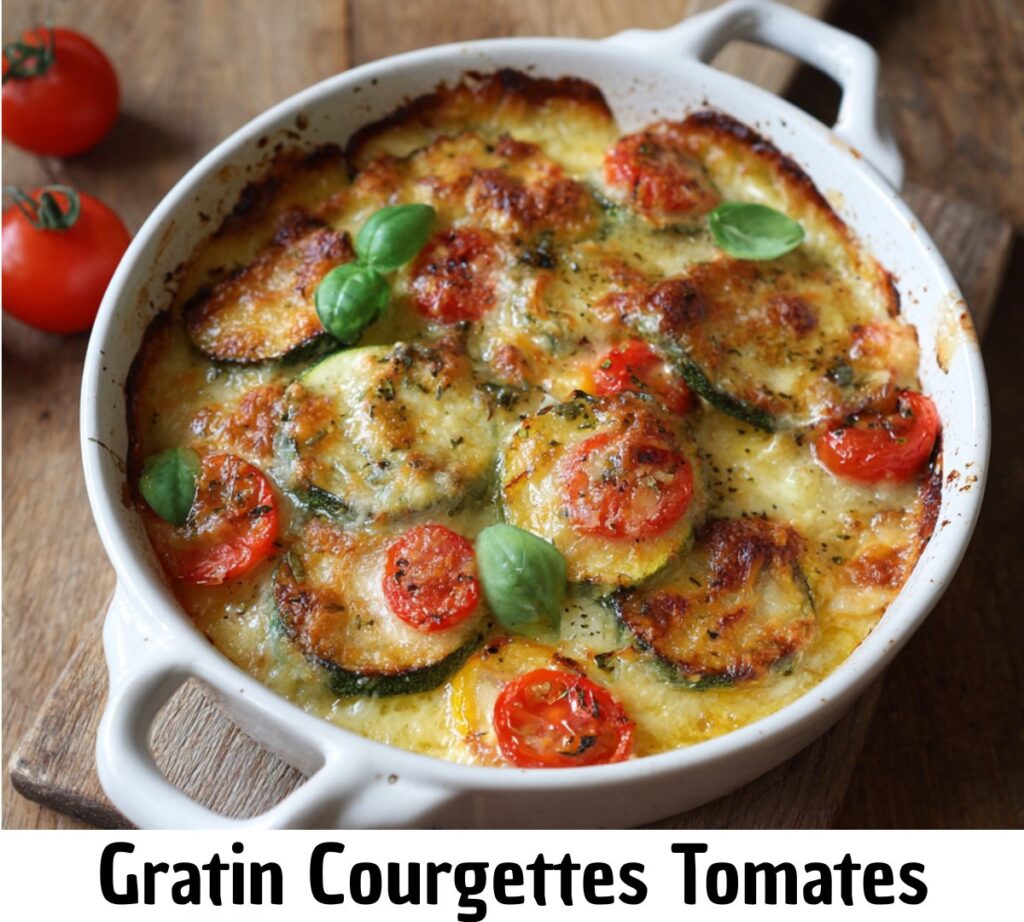 Gratin léger de courgettes et tomates au fromage doré – fondant, parfumé et facile