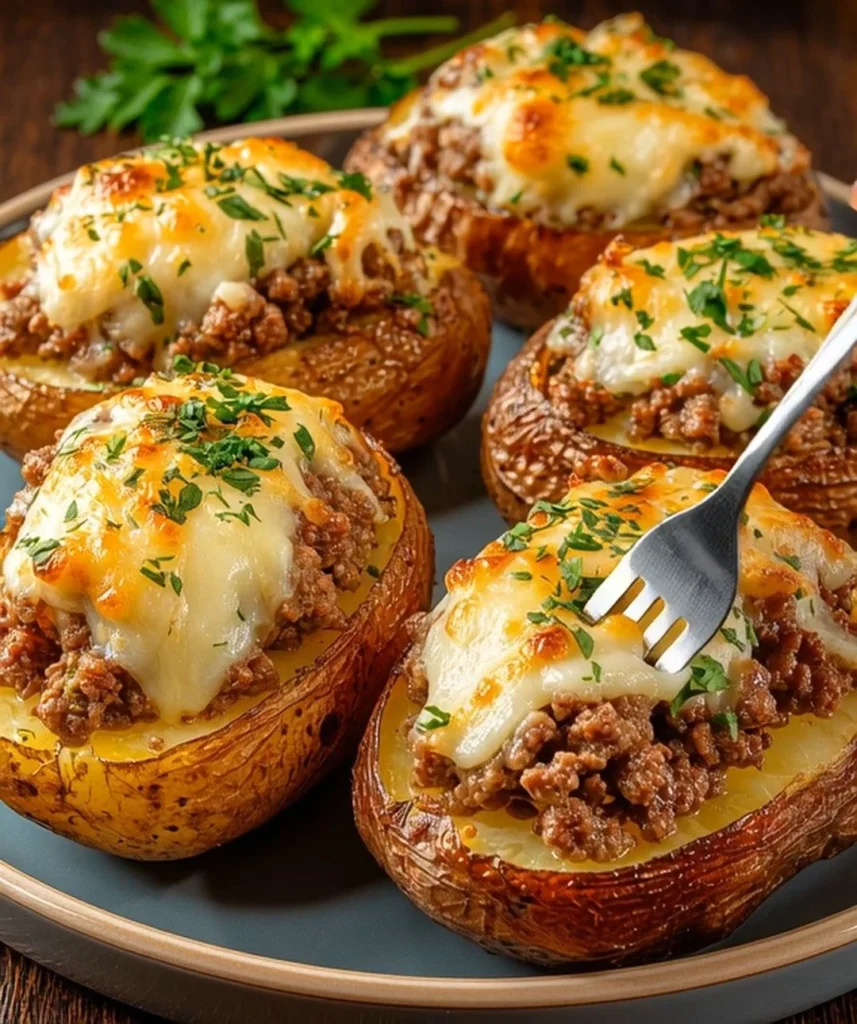 Les pommes de terre farcies avec de la viande hachée et un gratin de fromage sont un plat délicieux et réconfortant. C’est un repas qui plaira à toute la famille. Facile à préparer, vous pouvez personnaliser cette recette selon vos goûts et ingrédients disponibles.