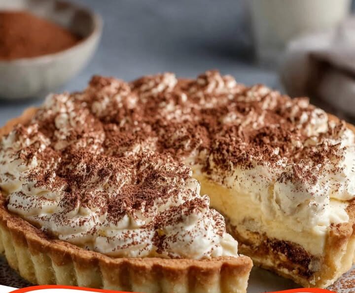 Voici une version longue, élégante et raffinée de ta recette, parfaite pour un article ou une publication gourmande. Ce dessert revisite le tiramisu classique sous forme de tarte, tout en conservant sa douceur, son parfum intense de café et sa texture aérienne. Chaque bouchée est un équilibre entre croustillant, moelleux et onctuosité — un vrai moment de plaisir. Ce qui rend cette tarte si spéciale, c’est l’harmonie entre ses différentes couches. La base sablée apporte une touche croquante qui contraste merveilleusement avec la crème au mascarpone, légère comme une mousse. Les biscuits imbibés de café ajoutent une profondeur aromatique irrésistible, tandis que le cacao amer vient équilibrer la douceur générale du dessert. Après un temps de repos au réfrigérateur, la texture se stabilise et devient encore plus fondante, rendant chaque part absolument divine. C’est un dessert idéal pour recevoir, mais suffisamment simple pour être préparé lors d’une envie gourmande improvisée. Son aspect élégant en fait une pièce parfaite pour un anniversaire, un repas en famille ou une soirée entre amis. Et surtout, elle plaît à tout le monde, même à ceux qui ne sont pas de grands amateurs de café !